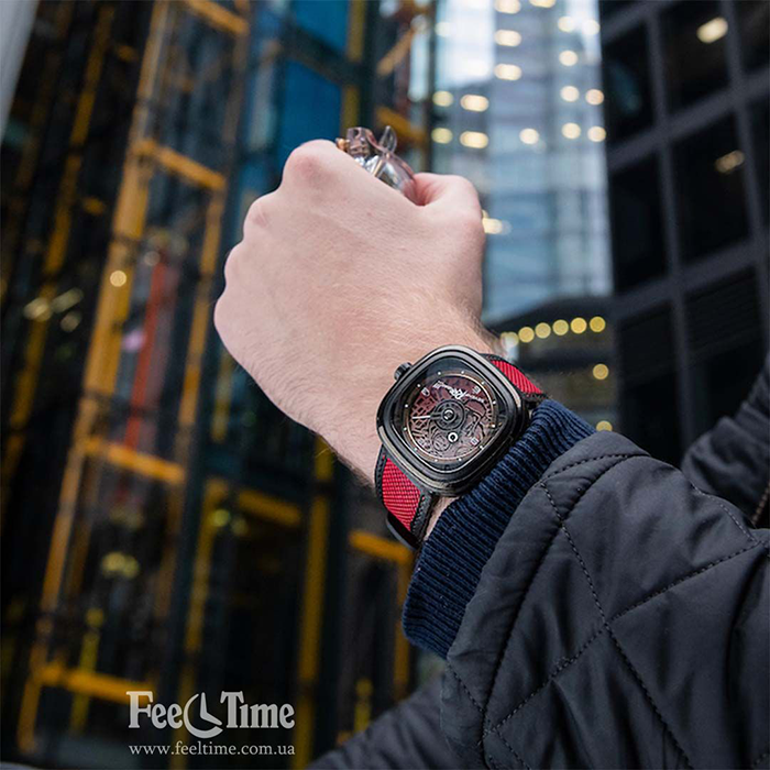 Сама модель имеет классическую для бренда квадратную форму подушки. Все часы Сэвэнфрайдей которые я видел, имеют именно такую форму. Бренд нашел свой стиль и пока не старается изобретать велосипед.