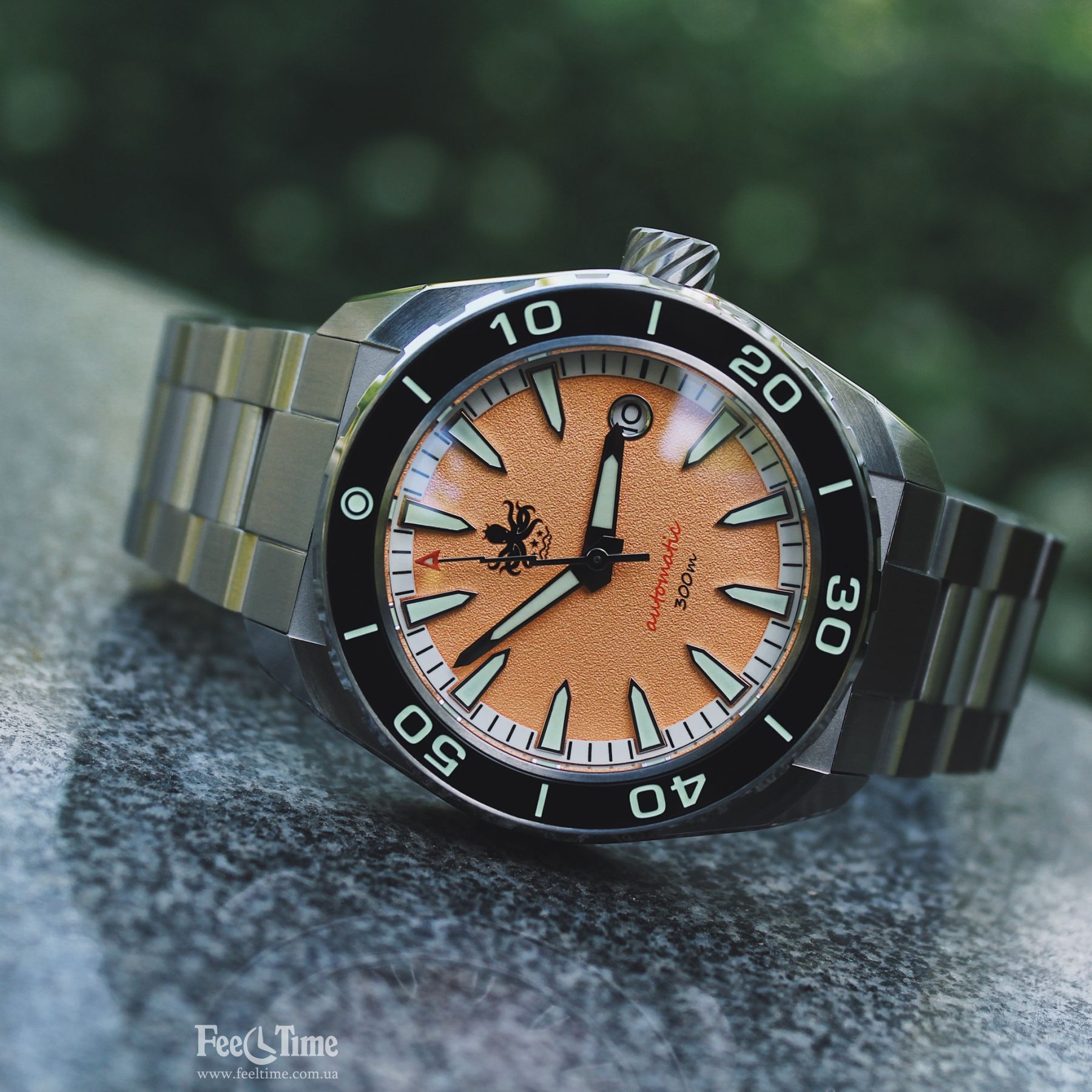 Из других характеристик - это сапфир с 3я слоями антиблика, водозащита - 300 метров, и на борту классика для микробрендов в этой ценовой категории - японская механика с автоподзаводом Seiko NH35A. Надежный и неприхотливый механизм с запасом хода 42 часа.