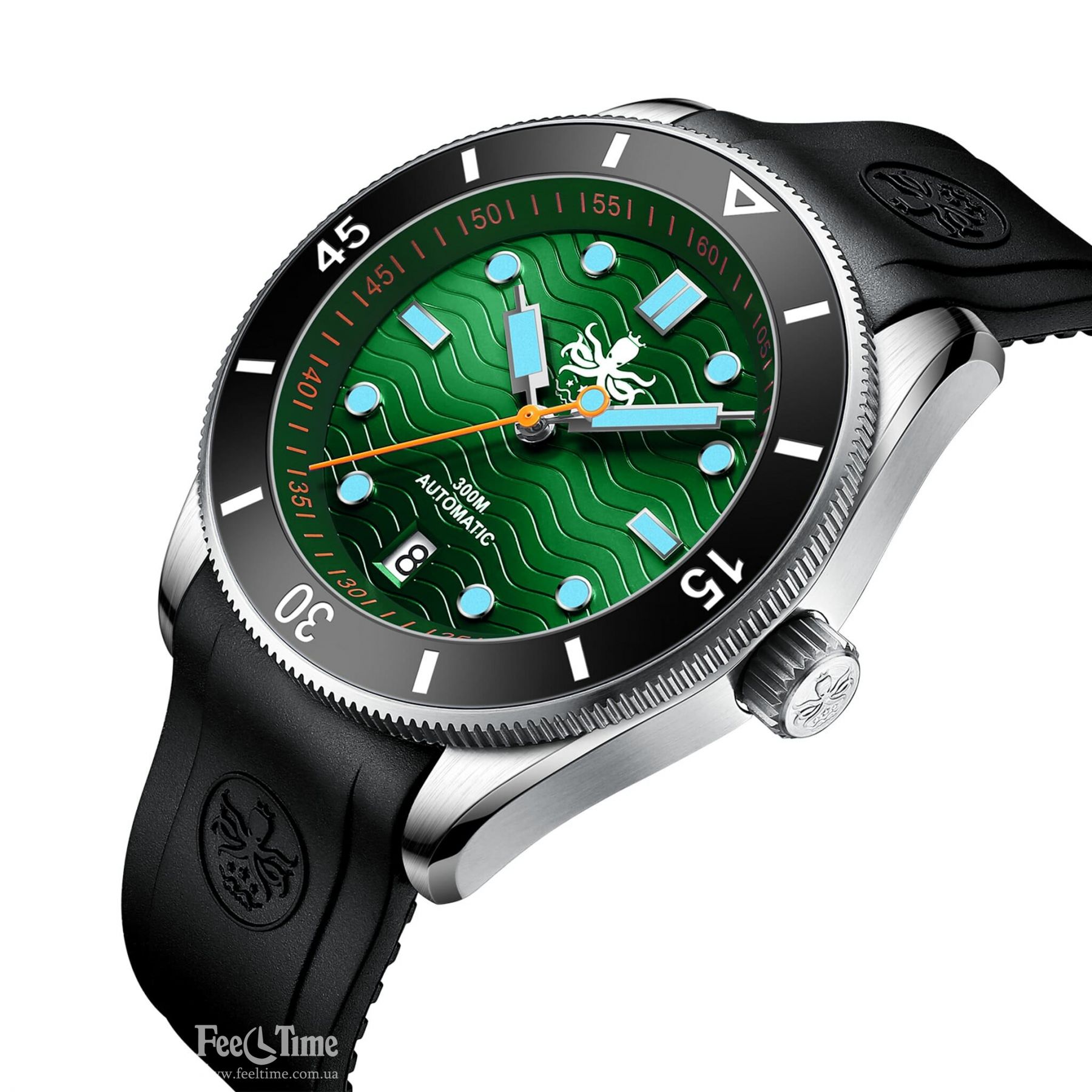 Массивная и удобная головка с фирменной гравировкой осьминога. Осьминог же по классике есть и в виде гравировки на задней крышке часов.