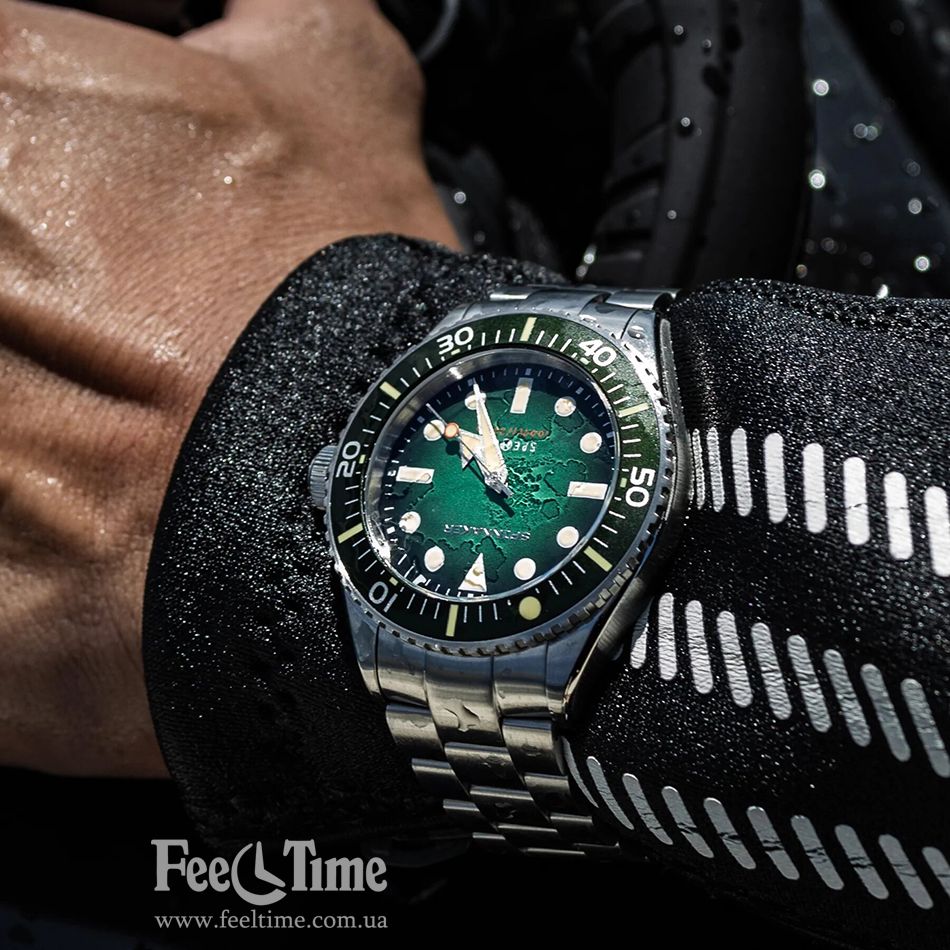 300 метров водозащиты, сапфир с тройным слоем антиблика, на борту японец как и в предыдущей модели Seiko NH35A.