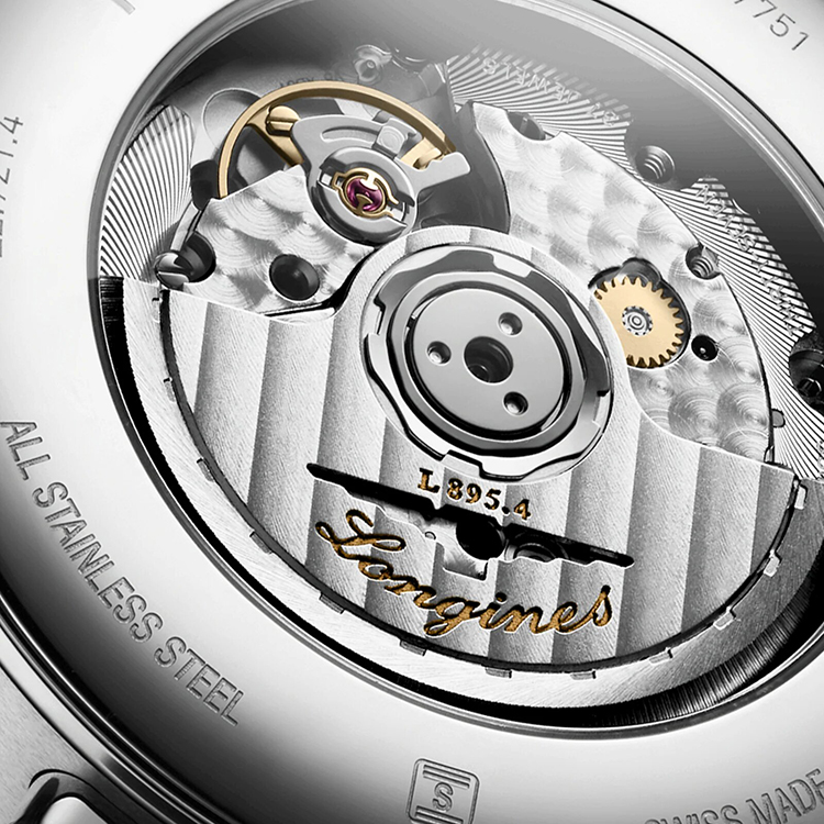 Through the back of the watch, we can see Longines' own L895.4 caliber. Perhaps I'll start with the fact that this is a certified chronometer that meets the standards of the COSC watch chronometry institute.