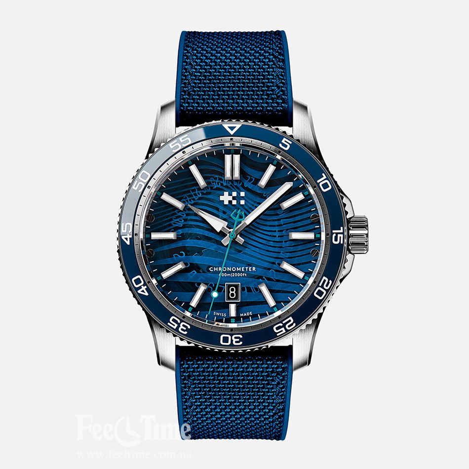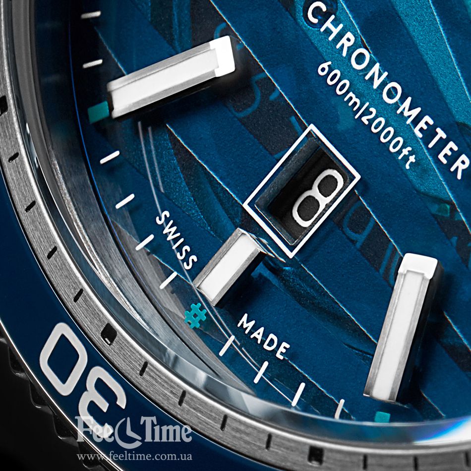 And the strap here is really cool. I would say that it is downright velvety. Maximum pleasant, flexible, elastic. And, according to Christopher Ward, the brand donates 5 euros from the sale of each such strap to protect the oceans from garbage.