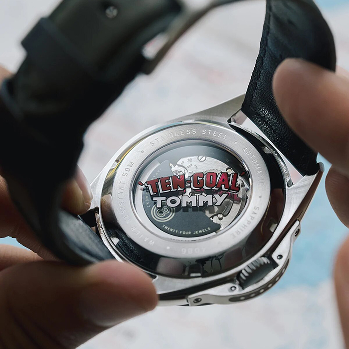 The finishing touches were more or less brightened up with a branded AVI-8 pendulum and “Ten Goal Tommy” inscription on the glass, which pays homage to Hitchcock's merits in the field of polo.