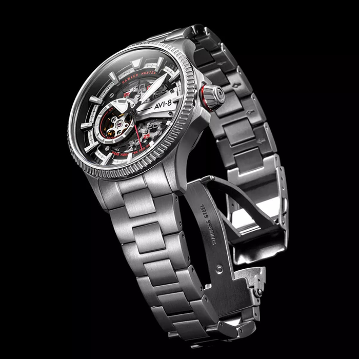 The latest model from our selection is the AVI-8 Diables Rouges Hawker Hunter watch, dedicated to the Hawker Hunter fighters that were in service in Britain in the 1950s and 60s.