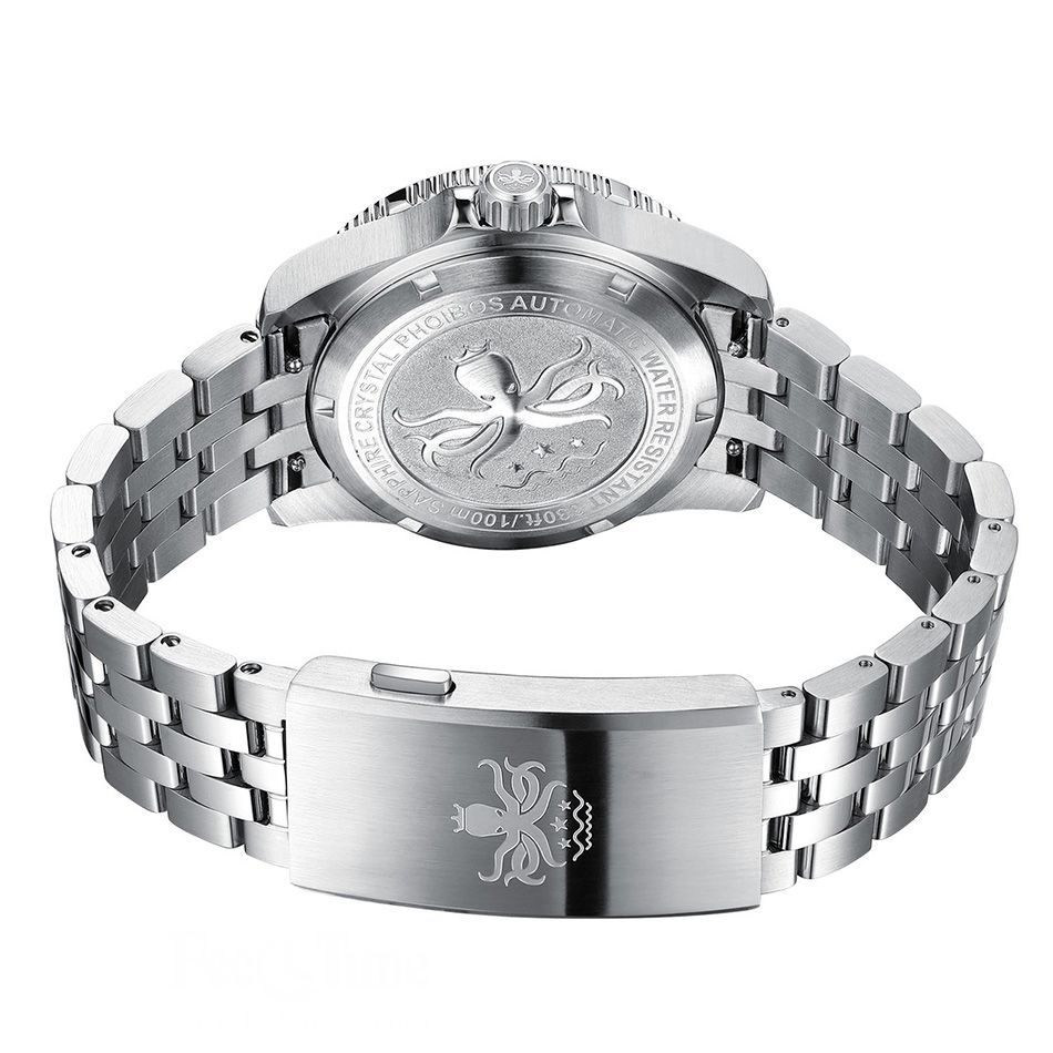 The back cover also features an engraving in the form of an octopus logo. And I always say that in this price segment, famous Swiss and Japanese brands will have bare covers, even many microbrands do not do anything special for this price, so Phoibos pleases with details in this regard.