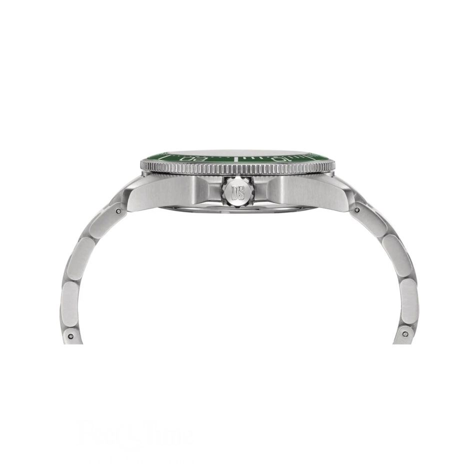 Note its stainless steel outer rim. When you rotate the bezel, it stays in place and only the green bezel rotates.