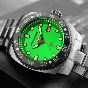The bezel is tight, easy to rotate, but the fly in the ointment is the sound of clicks. Personally, I didn't like it. Although for the grip itself, rotation and lack of backlash - 5+! On the bezel marks, on the hands, on the hour markers, and even on the crown, there is a luminescent material that accumulates energy and glows in the dark. Aragon has complete order with lum!