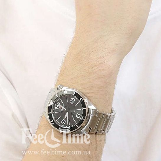 Reliable, quartz, Japanese mechanism on board. Proprietary Eco Drive technology. The battery is powered by natural light sources and does not require replacement for up to 12 years.