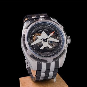 The watch is massive and heavy. The case and bracelet are made of stainless steel. There is a very harmonious combination of black and metallic colors.