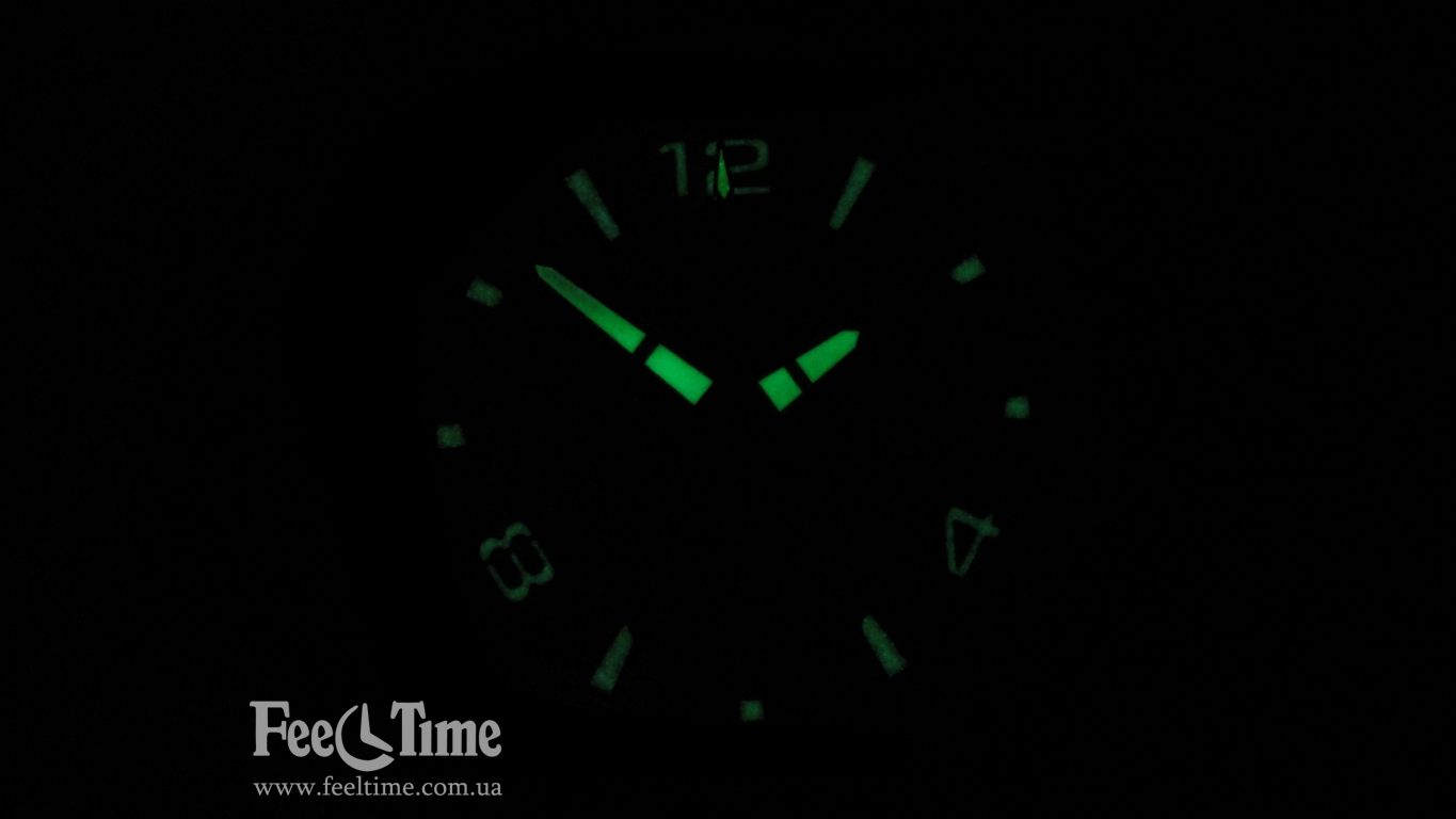 The hands and hour markers are coated with a special compound that accumulates energy and glows in total darkness.