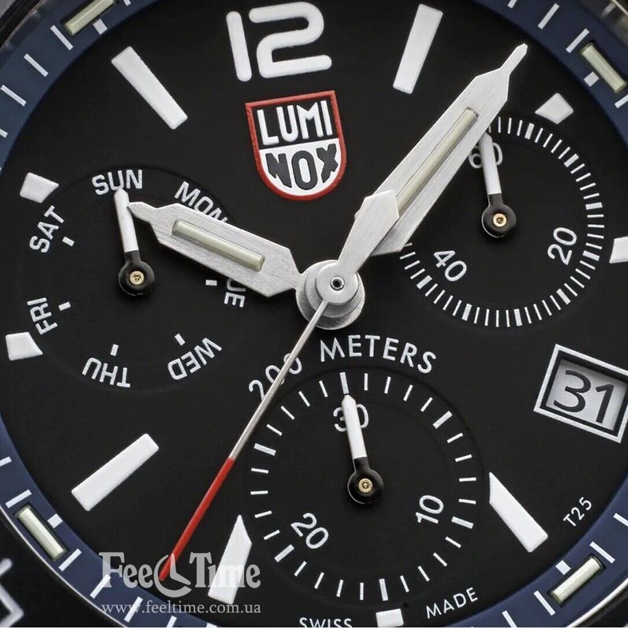 The dial is black with white markers, which contrast perfectly in color and have a good effect on readability. It goes without saying that Luminox watches use branded tritium, which shines for up to 25 years and does not require additional recharge from light.
