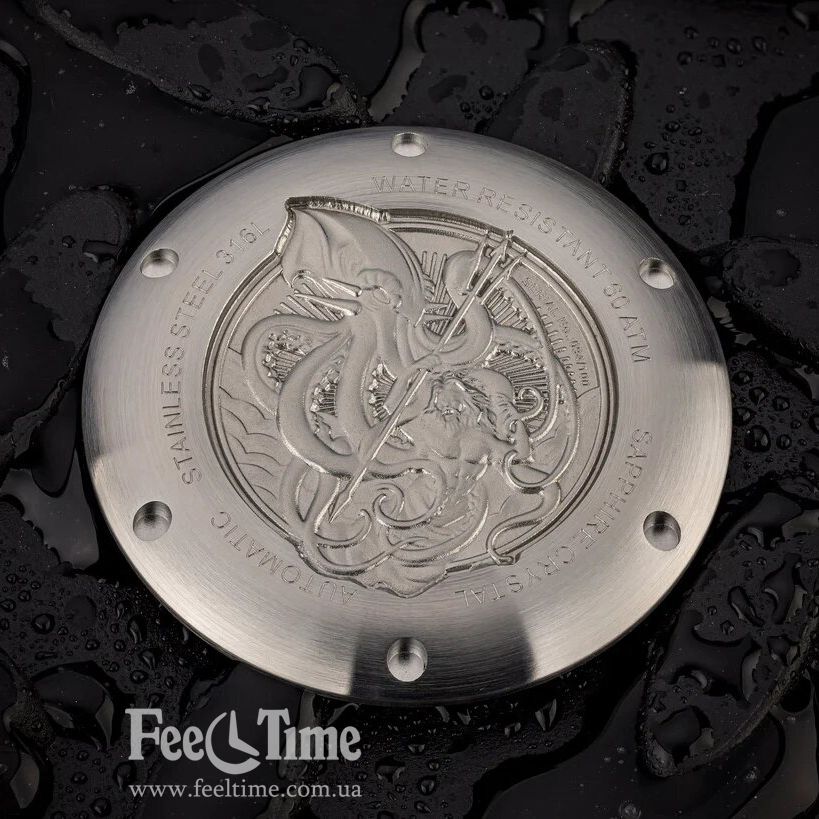 A watch from an American microbrand will give you a lot of emotions. The turtle-shaped body is made to the highest standard. Excellent quality finish and detail. On the back cover there is an expensive engraving of a sea monster, which correctly reflects the message of the watch.