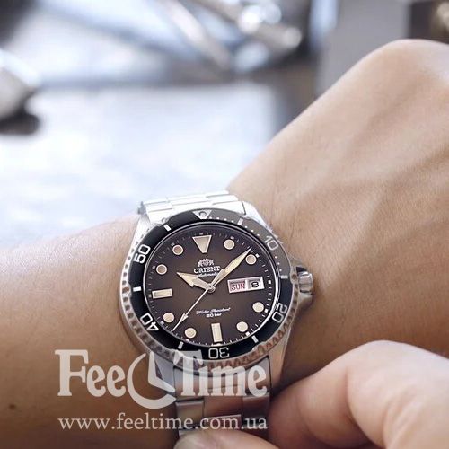 The model came to Ukraine in 3 dial colors. There is a black and gray gradient, a green gradient and a version with a blue dial and Pepsi bezel. Each dial is good in its own way and looks presentable. Applied Orient logo, tall hour markers and well-finished hands make the dial sum up expensive and stylish.