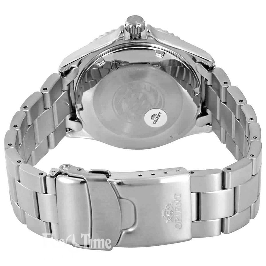 Модель приехала в Украину в 3х расцветках циферблата. Это градиент черного с серым, зеленый градиент и версия с синим циферблатом и "пепси" безелем. Каждый циферблат по-своему хорош и смотрится презентабельно. Накладной логотип Ориент, высокие метки часов и хорошо обработанные стрелки - делают циферблат в сумме дорогим и стильным.