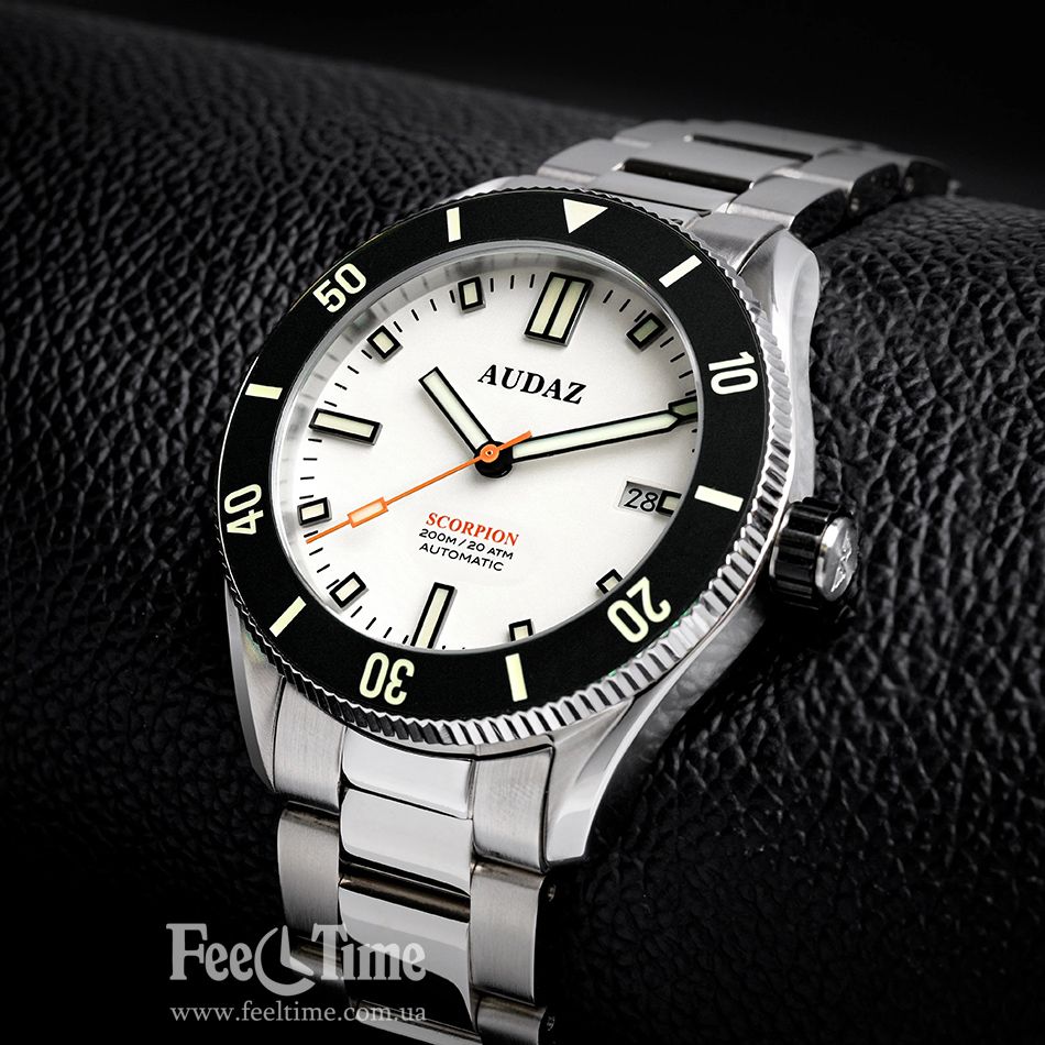 Часы Audaz Scorpion ADZ-3090-06 в небольшом корпусе из нержавеющей стали 316l с диаметром 40 мм, но от этого модель смотрится отнюдь не менее мужественной.