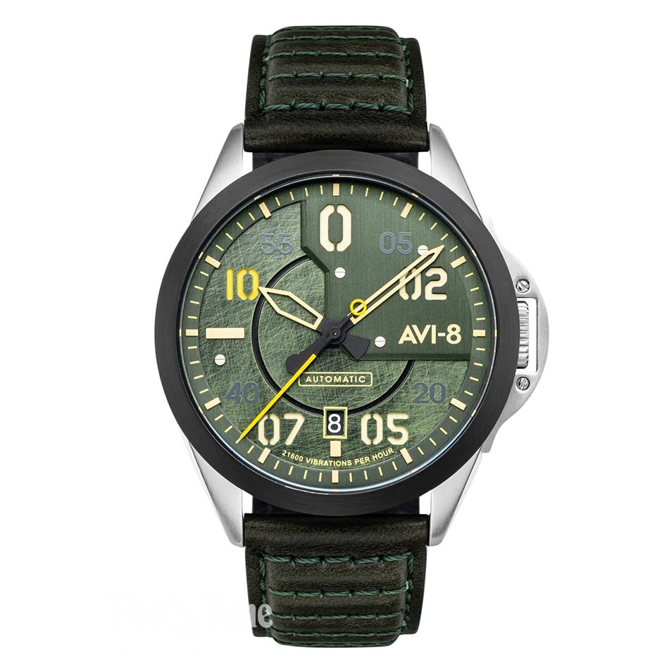 Часы AVI-8 Hitchcock Automatic Greentree AV-4086-03 посвящены пилоту и олимпийскому игроку в поло Томасу Хичкоку младшему, который погиб в период Второй Мировой Войны в авиакатастрофе и американскому одноместному истребителю тех времен P-51 Mustang.