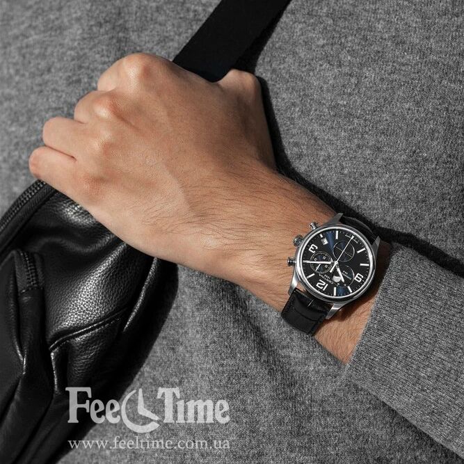 Сразу бросается функция "Фаза луны" в верхнем маленьком счетчике циферблата. Вряд ли вы будете пользоваться этой функцией, но смотрится стильно и красиво. Циферблат дорогой и хорошо читаемый. Швейцарская Super Luminova на стрелках и метках часов, которая накаплиает энергию и светится в темноте. Закрывает циферблат сапфировое стекло с антибликовым покрытием.