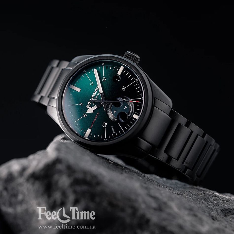 Модель Echo/Neutra Averau Moon Phase Green PVD отдаёт дань уважения полевой стилистике часов.