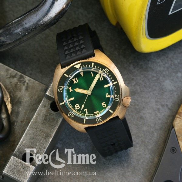 Её самое главное отличие от более доступных версий - это корпус из уникального материала. Бронзовые корпуса нынче очень востребованы и всегда уходят в первую очередь. Откуда такой интерес к бронзе? Конечно же это привкус винтажа и индивидуальность каждого экземпляра, так как бронза достаточно быстро начинает покрываться налётом (патиной) и приобретает уникальный рисунок, который будет характерен только для вашей модели. Безусловно, налёт всегда можно очистить, но именно из-за него многие и покупают бронзовые часы.