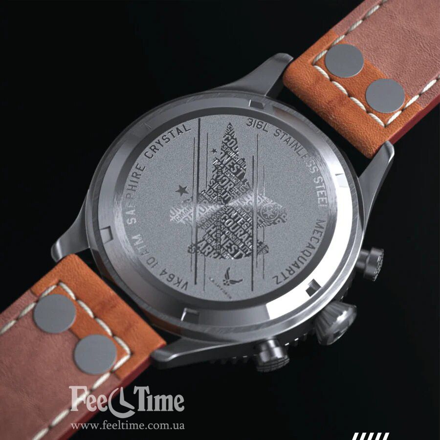 Так же особенностью модели является то, что на борту установлен так называемый, гибридный меко кварц, который работает от батарейки, но визуально идёт как механика (плавный ход секундной стрелки). Это механизм от японского производителя Seiko с калибром VK64.
