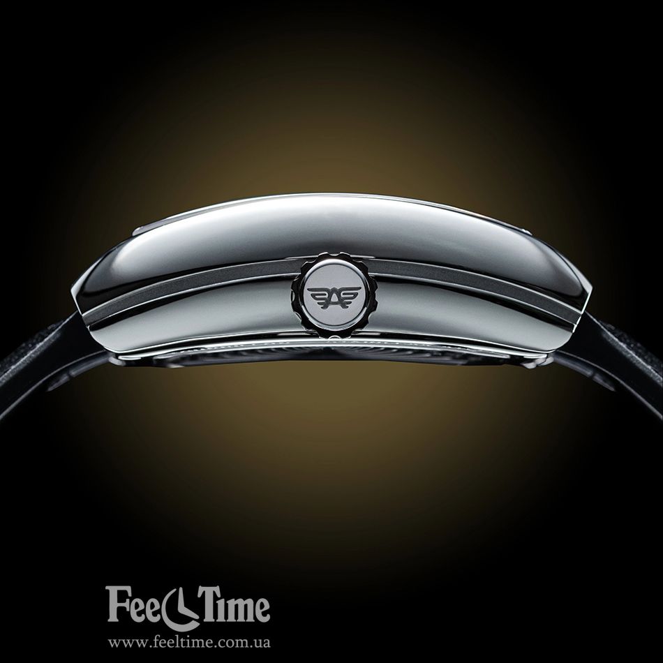 Годинник у довгастому (бочкоподібному) корпусі з нержавіючої сталі. У пару йде ремінець із комбінації натуральної шкіри із зовнішнього боку та каучуку із внутрішньої.