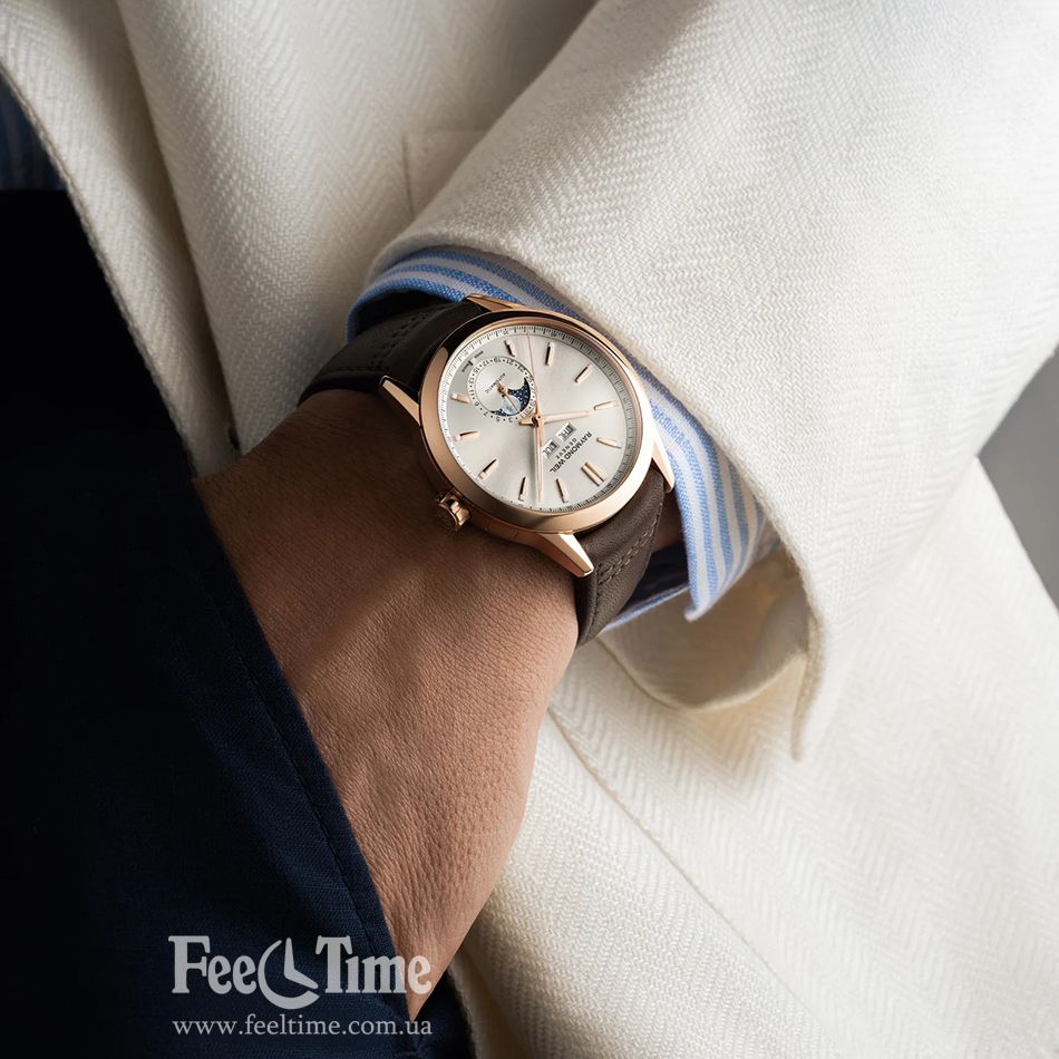Сам дизайн - це еталон класики. Корпус. із нержавіючої сталі з PVD покриттям під золото. Ремінець із преміальної, натуральної шкіри.